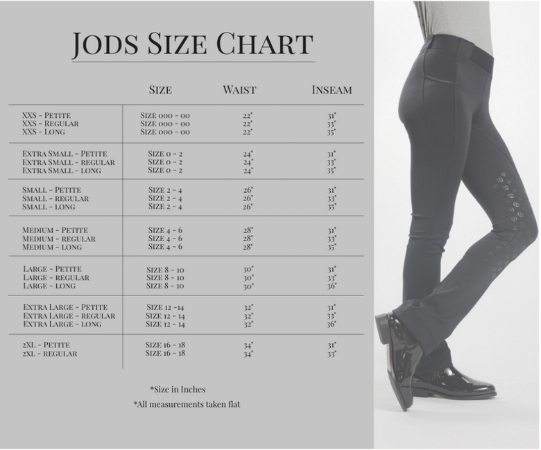 Tous les Jours performance Jods are boot cut with tie downs. They are designed to be worn to the floor unlike classic Kentucky Jodhpurs. They are not designed to be worn long past the heel.